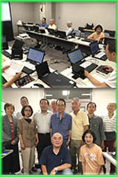 パソコン教室の卒業生が自主的に行っている初心者どうしの勉強会。ゆっくり楽しくを合言葉に、パソコンでできることを工夫しながら進めています。 |